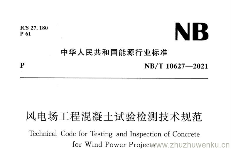 NB∕T 10627-2021 pdf下载 风电场工程混凝土试验检测技术规范。Technical Code for Testing and Inspection of Concrete for Wind Power Projects.
