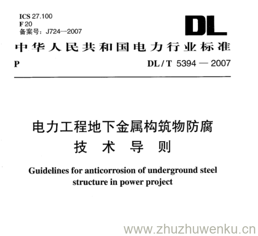 DL/T 5394-2007 pdf下载 电力工程地下金属构筑物防腐 技术导则。Guidelines for anticorrosion of underground steel structure in power project.