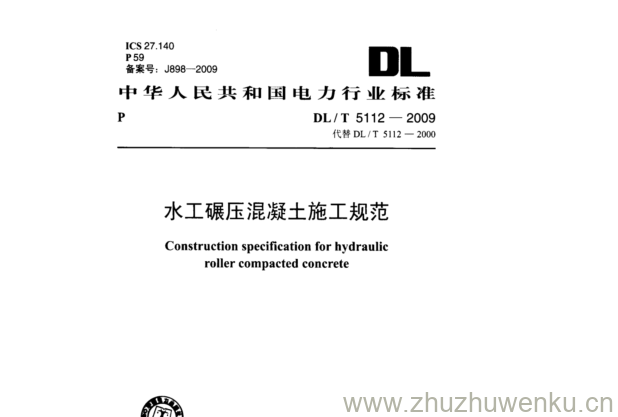 DL/T 5112-2009 pdf下载 水工碾压混凝土施工规范。Construction specification for hydraulic roller compacted concrete.
