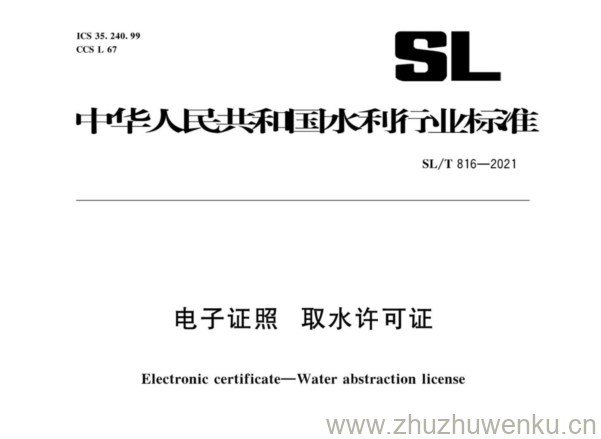 SL/T 816-2021 pdf下载 电子证照 取水许可证。Electronie certificate-Water abstraction license.