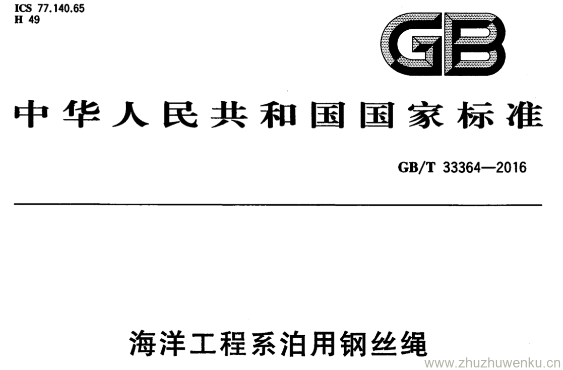 GB/T 33364-2016 pdf下载 海洋工程系泊用钢丝绳