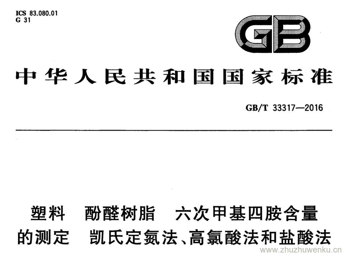 GB/T 33317-2016 pdf下载 塑料 酚醛树脂 六次甲基四胺含量的测定 凯氏定氮法、高氯酸法和盐酸法
