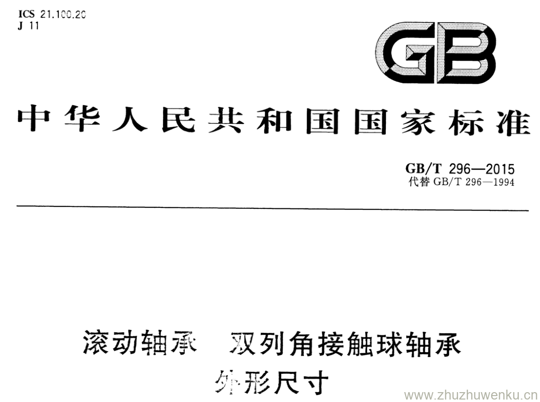 GB/T 296-2015 pdf下载 滚动轴承 双列角接触球轴承 外形尺寸