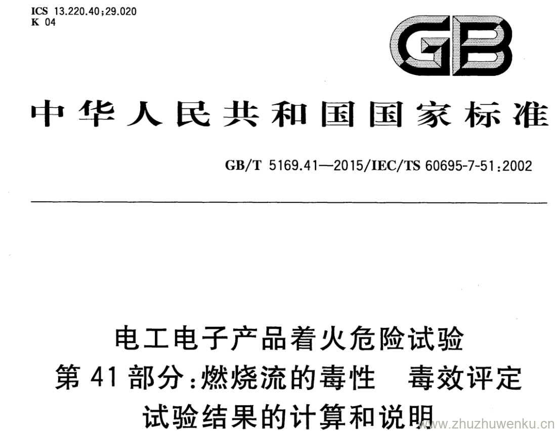 GB/T 5169.41-2015 pdf下载 电工电子产品着火危险试验 第41部分:燃烧流的毒性毒效评定试验结果的计算和说明