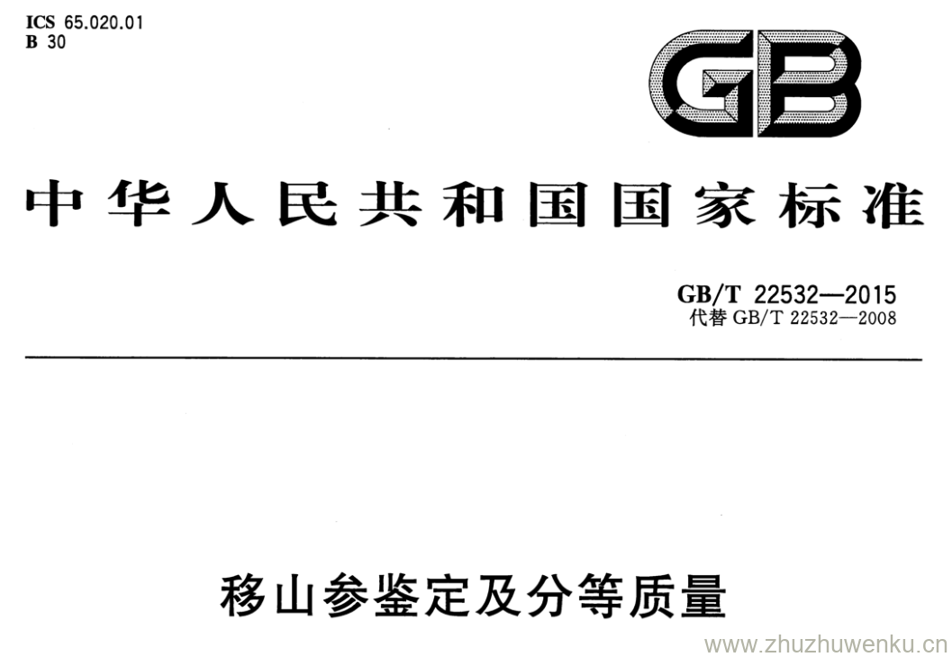 GB/T 22532-2015 pdf下载 移山参鉴定及分等质量