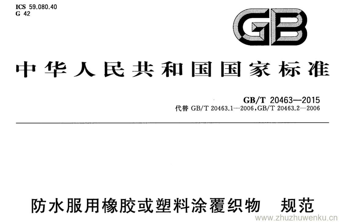 GB/T 20463-2015 pdf下载 防水服用橡胶或塑料涂覆织物 规范