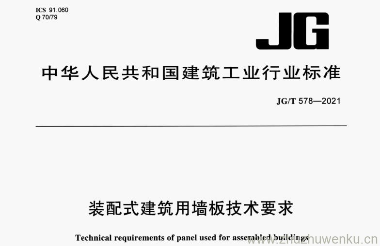 JG/T 578-2021 pdf下载 装配式建筑用墙板技术要求。Technical requirements of panel used for assembled buildings.本标准JG/T 578-2021规定了装配式建筑用墙板的术语和定义、分类和标记、一般要求、要求、试验方法、检验规则、标志、包装、贮存和运输。