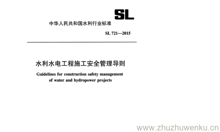 SL 721-2015 pdf下载 水利水电工程施工安全管理导则。Guidelines for construction safety management of water and hydropower projects.