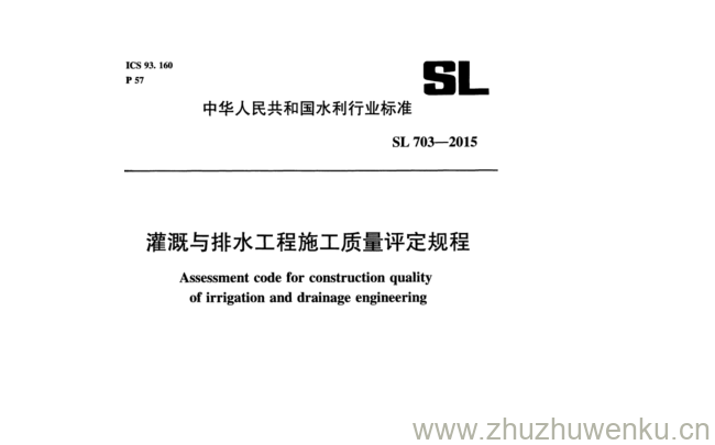SL 703-2015 pdf下载 灌溉与排水工程施工质量评定规程。Assessment code for construction quality of irrigation and drainage engineering.