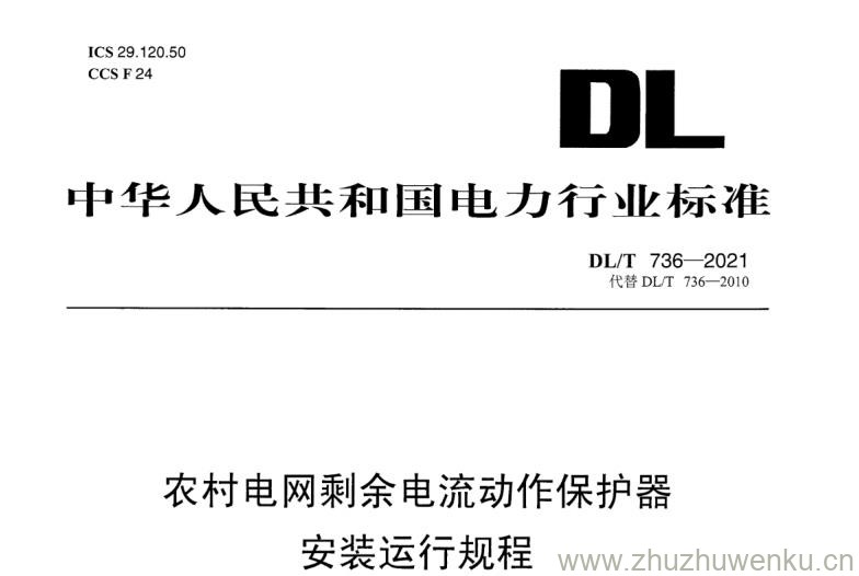 DL/T 736-2021 pdf下载 农村电网剩余电流动作保护器安装运行规程。Specifications for installation and operation of residual current protector in rural grids.