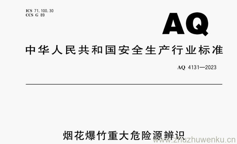 AQ 4131-2023 pdf下载 烟花爆竹重大危险源辨识。Identification of major hazard installations for fireworks.