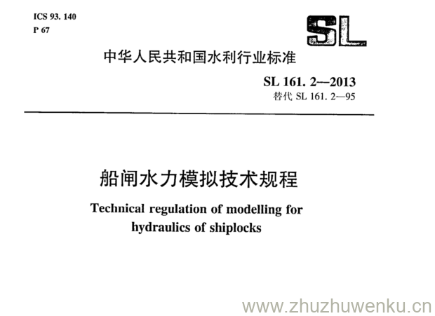 SL/T 161.2-2013 pdf下载 船闸水力模拟技术规程。Technical regulation of modelling for hydraulics of shiplocks.