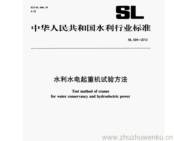 SL/T 594-2013 pdf下载 水利水电起重机试验方法。Test method of cranes for water conservancy and hydroelectric power.