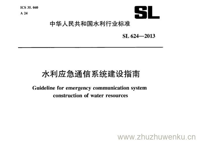 SL/T 624-2013 pdf下载 水利应急通信系统建设指南。Guideline for emergencycommunication system construction of water resources.